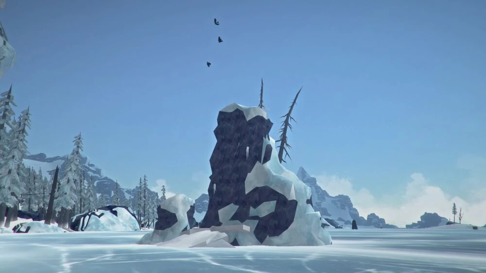 Un cadavre gelé peut généralement être trouvé à moitié écrasé sous la roche, entouré de corbeaux volant autours.