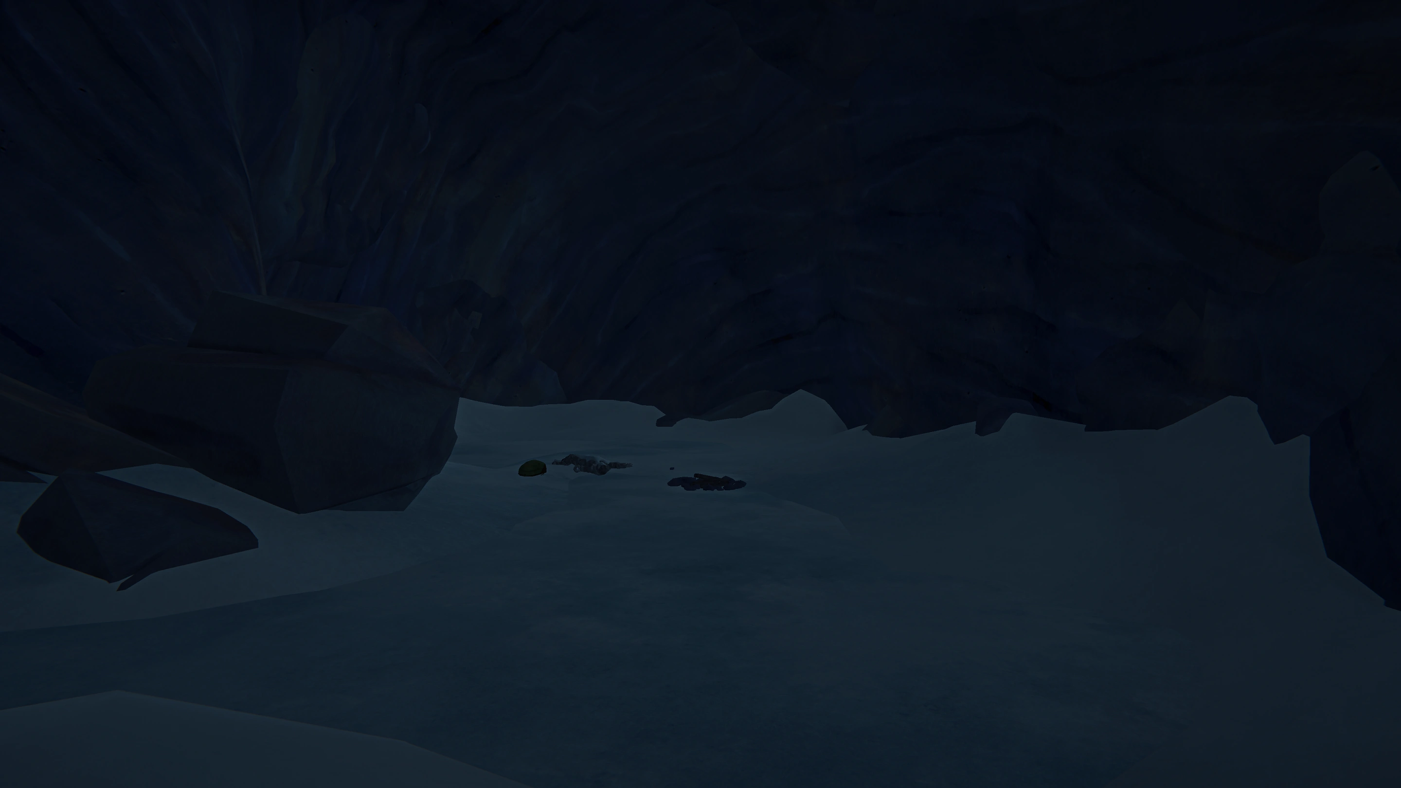 The cave doesn't have a bed, but spawns a Campfire, a Frozen Corpse and a Backpack. The backpack often contains basic food, drink, and clothing. Despite its spartan amenities, the cave's shelter can be a lifesaver if caught in a blizzard in the area.