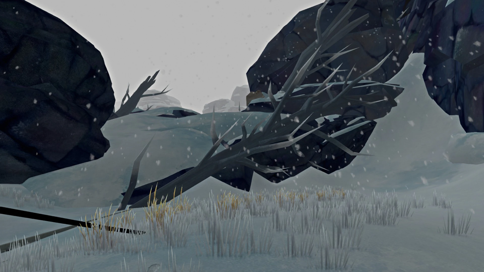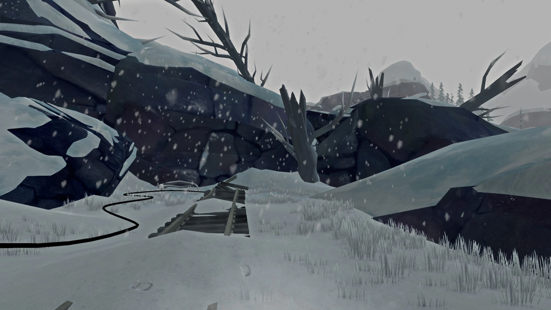 The Landslide blocks the train tracks, forcing the player to go into the nearby frozen pond and over a tree bridge to get around it entering Broken Railroad. The nearby lower pond often contains a Wolf hunting Rabbits. However, when exiting Broken Railroad, the player can climb over the landslide, saving time and Fatigue.