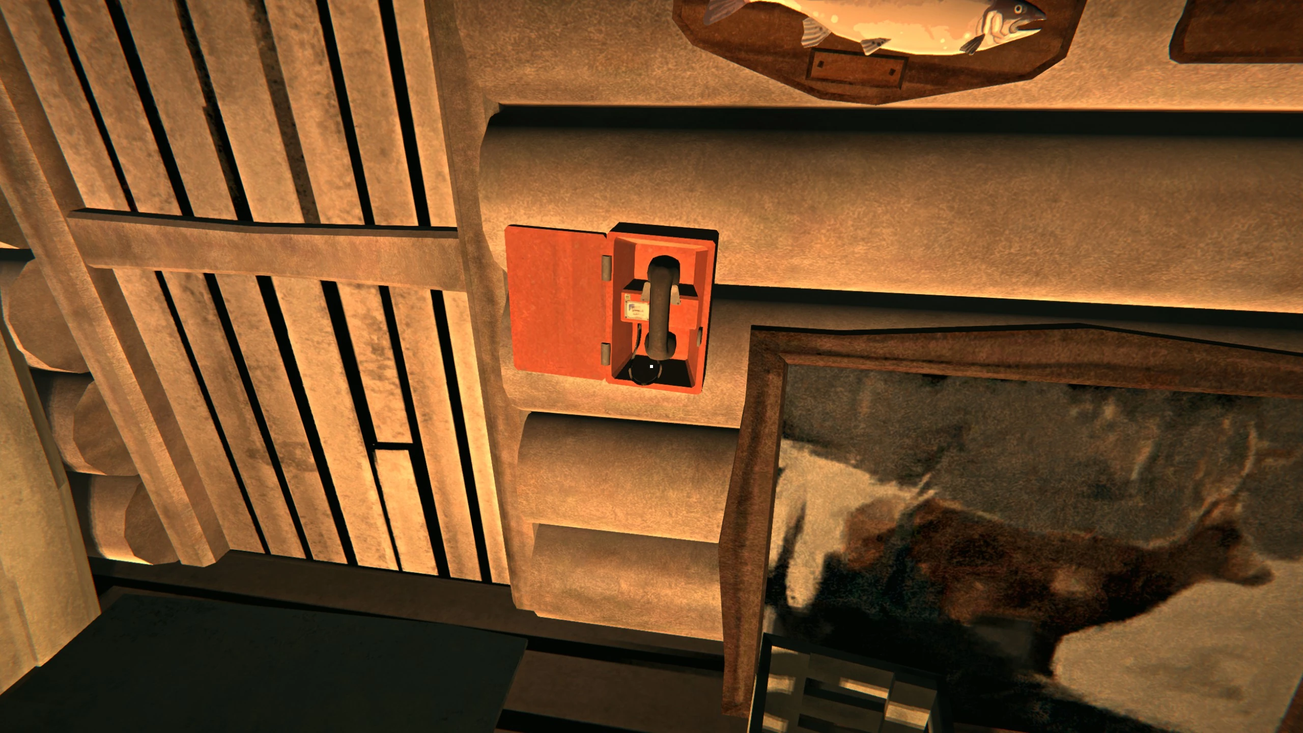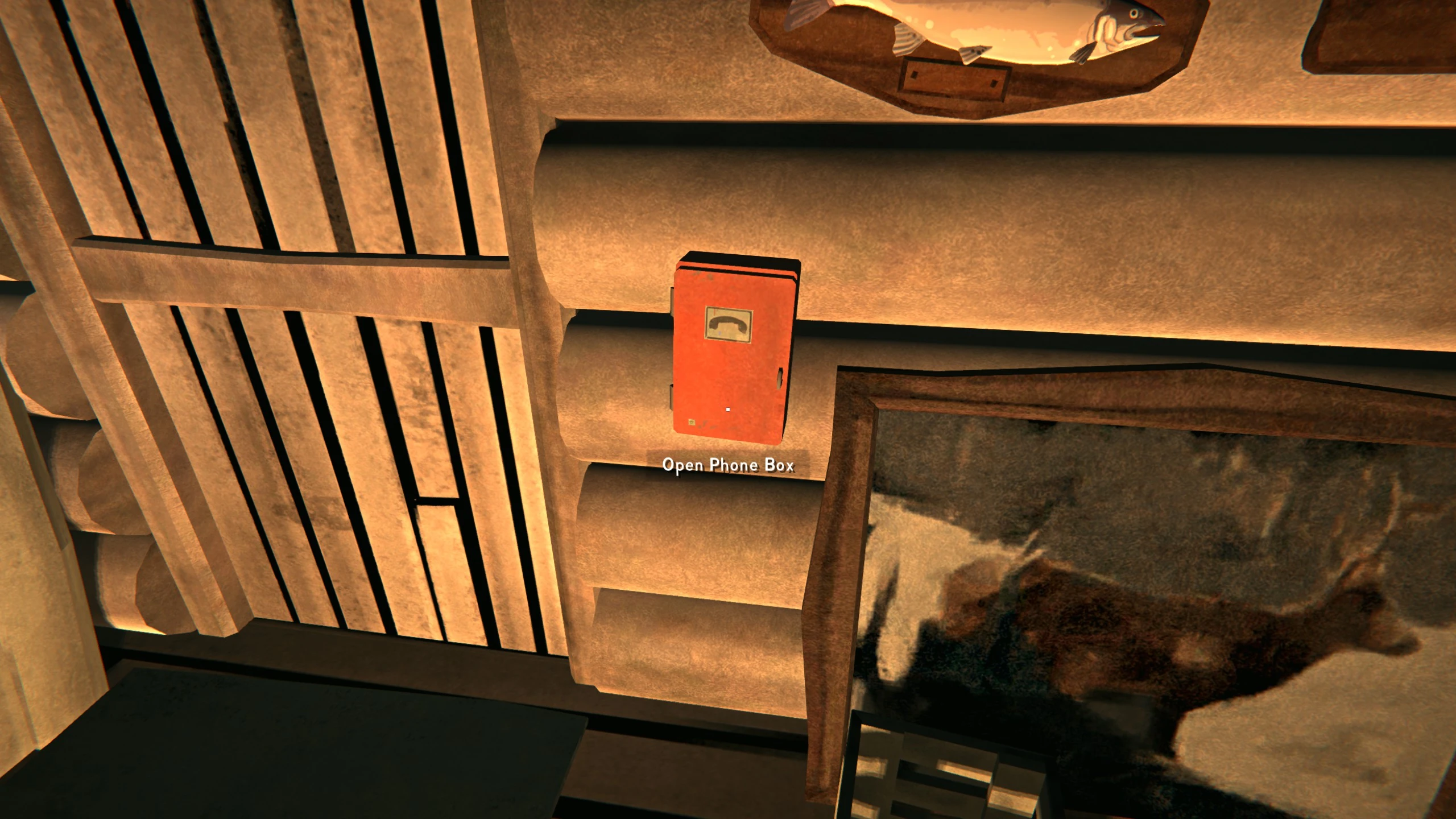 A Phone Box is a stationary object found inside the Hunting Lodge in Episode 2: Luminance Fugue in Wintermute. It a has no functionality when first found, but while exploring the Lodge during the Aurora, the phone will begin ringing. Approaching and opening the cover will cause the phone to stop, leading to no further interaction.