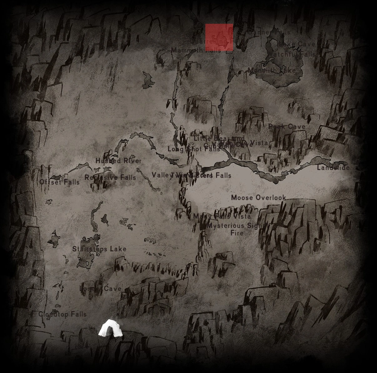 Quarrelling Falls are a couple of waterfalls located halfway between Monolith Lake and Mammoth Falls in the Hushed River Valley. There's no shelter to be found anywhere nearby, but Deer, Rabbits, and Old Man's Beard Lichen can commonly be found in the local area.
