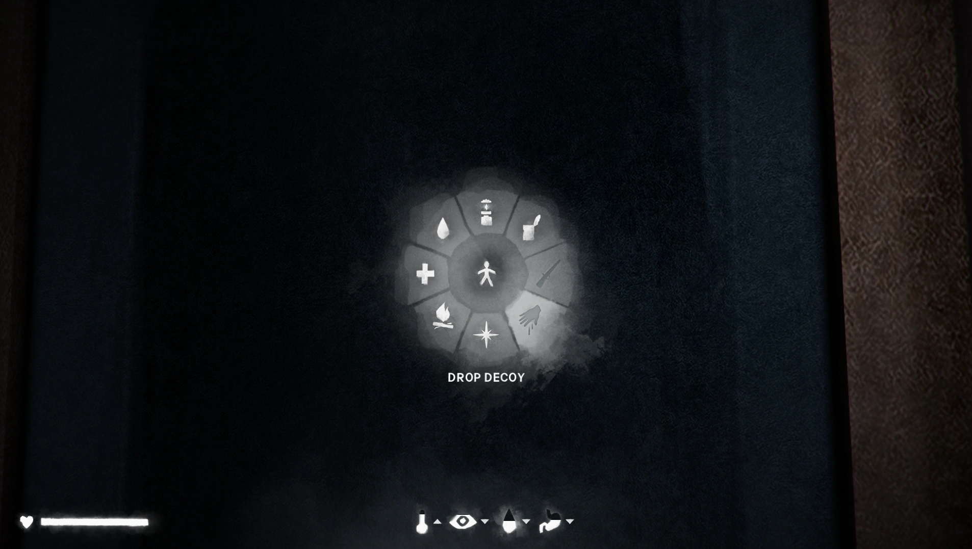 - 3 drops 1 piece of cooked or raw meat/1 Fresh Gut in the player's inventory onto the ground (Drop Decoys)