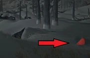 Occasionally, the player will see a red slope when traveling the world. This is the Steep Slope Warning, and warns the player that walking over this area can result in a Sprain, such as a steep hill or rocky mountainside slope. If the player's Carry Weight is Over Encumbered and they are suffering from a Sprain Risk, they are more likely to acquire a Sprained Wrist or Sprained Ankle when walking through these areas.