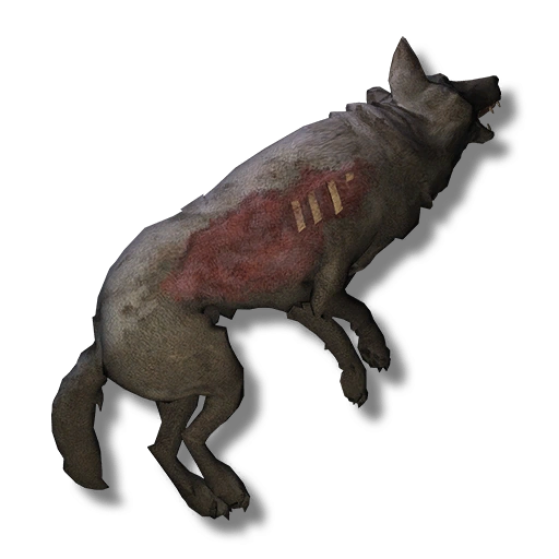 Wolf Carcasses are very rarely found placed in the world, often only being found in regions that Timberwolf packs frequent, serving as early warning signs for the region. Meat on a Ravaged Carcass will always be Mouldy (60% Condition).